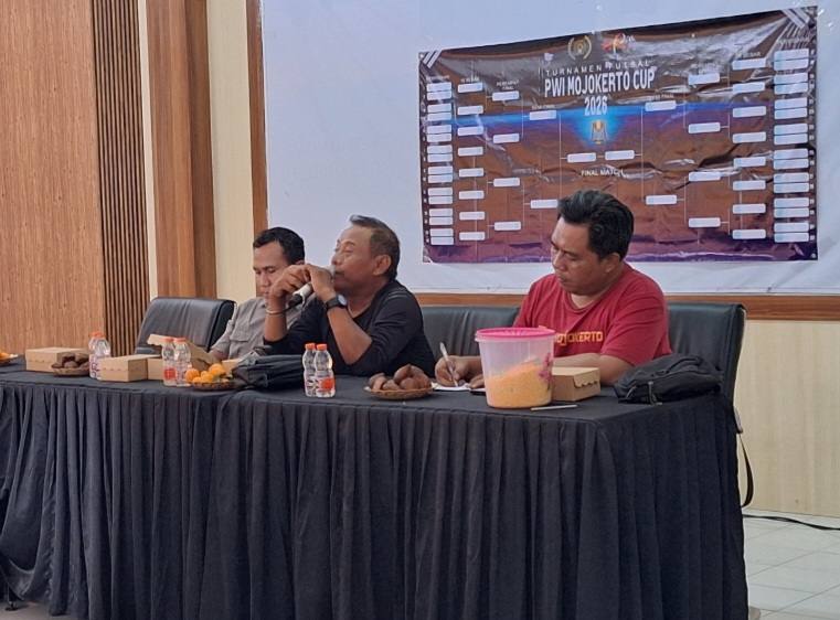 MOJOKERTO (Awalan.id) – Persiapan Turnamen Futsal Piala PWI Mojokerto Cup 2026 terus dimatangkan. Panitia bersama Asosiasi Kota (Askot) PSSI Mojokerto menggelar Technical Meeting (TM) dan drawing pertandingan di Aula Kantor Kelurahan Balongsari, Kecamatan Magersari, Kota Mojokerto.