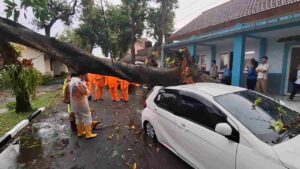 “Di Dusun Merjoyo, tiga rumah warga terdampak masing-masing milik Sardi (rusak berat ukuran 4×5 meter), Najib (rusak ringan 1×2 meter), dan Wenny (rusak ringan 1×3 meter). Sebuah pohon jambu berdiameter sekitar 60 sentimeter tumbang dan berhasil dievakuasi petugas sekitar pukul 20.00 WIB,” jelasnya.