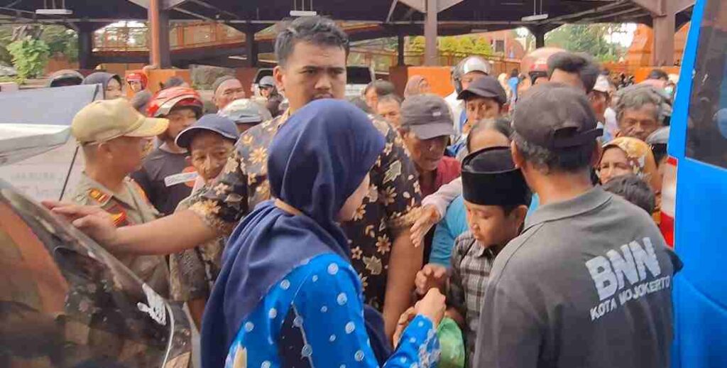 Antusiasme masyarakat terlihat tinggi. Dalam waktu singkat, ratusan paket takjil yang dibagikan di salah satu ikon Kota Mojokerto itu langsung habis diserbu pengguna jalan dan warga yang beraktivitas di sekitar lokasi.
