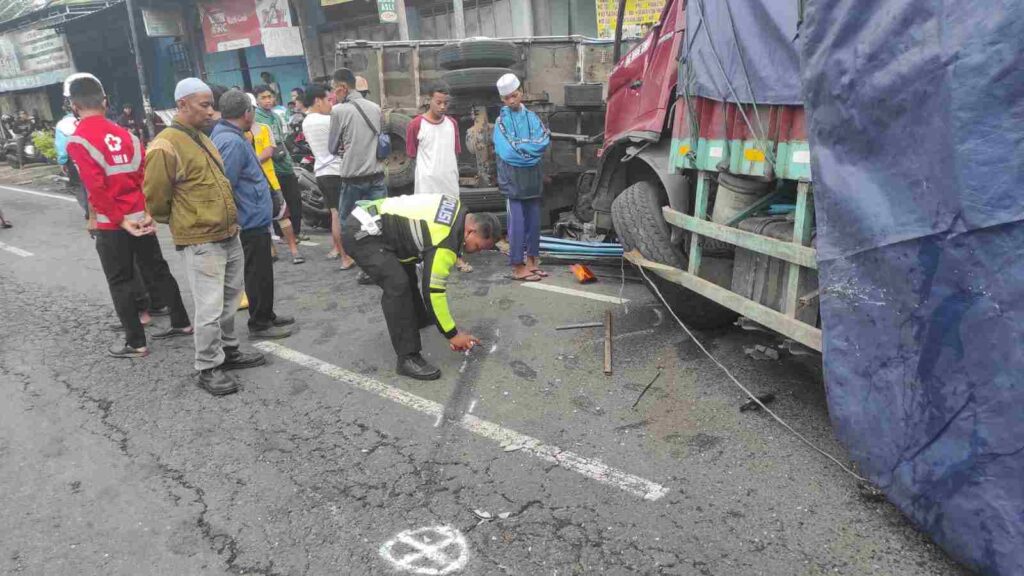 MOJOKERTO (Awalan.id) — Kecelakaan lalu lintas beruntun yang melibatkan tiga truk dan satu sepeda motor terjadi di Jalan Raya Desa Pacing, Kecamatan Bangsal, Kabupaten Mojokerto, Kamis (19/2/2026) sekitar pukul 05.00 WIB. Peristiwa ini diduga dipicu sopir truk yang mengantuk hingga kehilangan kendali.