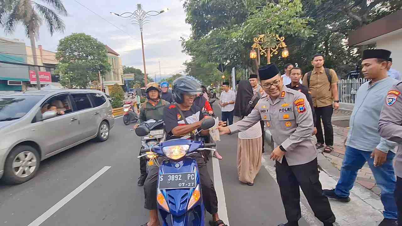MOJOKERTO (Awalan.id) — Semangat berbagi di bulan suci Ramadan 1447 Hijriah terasa hangat di depan Wisma Kapolres, Jalan Pahlawan, Kota Mojokerto, Rabu (25/2/2026). Jajaran Polres Kabupaten Mojokerto turun langsung ke jalan membagikan ratusan paket takjil kepada masyarakat dan pengguna jalan.