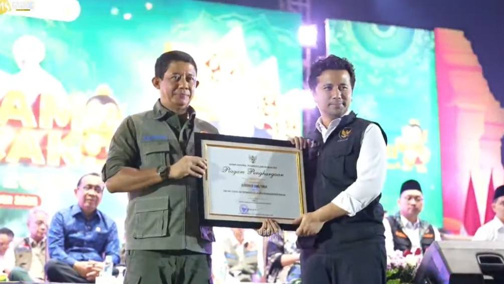 Kepala Badan Nasional Penanggulangan Bencana (BNPB) Letjen TNI Suharyanto menyerahkan penghargaan kepada Pemprov Jawa Timur atas dedikasinya dalam pengurangan risiko bencana. Letjen TNI Suharyanto juga menyerahkan pataka tuan rumah PRB 2026 kepada Pemprov Banten.