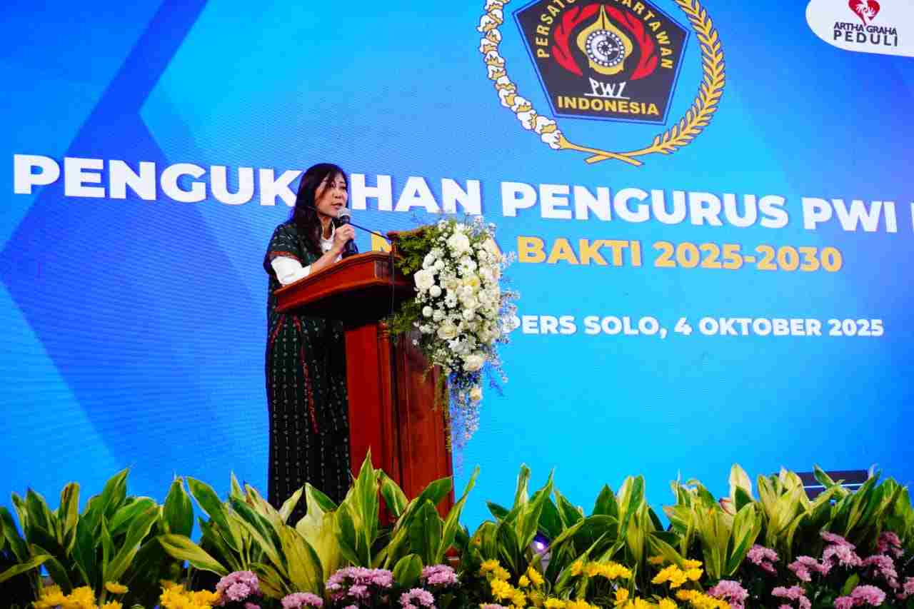 Solo (Awalan.id) – Pengurus Persatuan Wartawan Indonesia (PWI) Pusat periode 2025–2030 resmi dikukuhkan di Monumen Pers Nasional, Kota Solo, Jawa Tengah, Sabtu (4/10/2025). Pengukuhan dihadiri Menteri Komunikasi dan Digital (Menkomdigi) Meutya Hafid, Wakil Menkomdigi Nezar Patria, serta sejumlah tokoh pers nasional.
