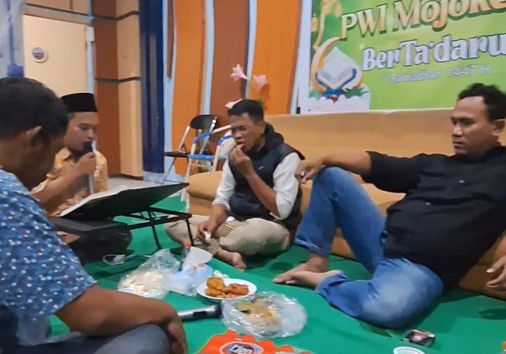 Kegiatan tadarus digelar rutin setiap malam usai salat tarawih di Sekretariat PWI Mojokerto Jalan Raya Pekayon Kecamatan Kranggan, Kota Mojokerto. Suasana khusyuk dan penuh kebersamaan tampak mewarnai lantunan ayat suci yang dibaca secara bergiliran oleh para peserta.