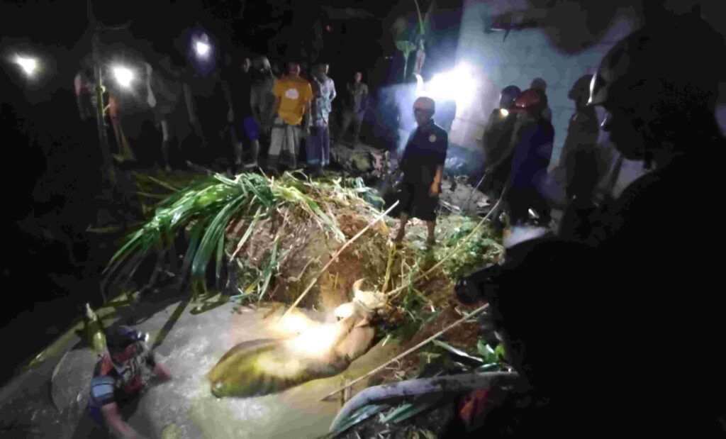 Meski menghadapi medan sulit dan kondisi hewan yang mulai lemas, mereka tidak menyerah. “Begitu tiba, kami langsung berkoordinasi dengan warga dan relawan. Alat manual kami siapkan, lalu kami tambahkan air ke kubangan agar sapi bisa mengapung, baru kemudian ditarik pakai tampar secara gotong royong,” jelasnya.